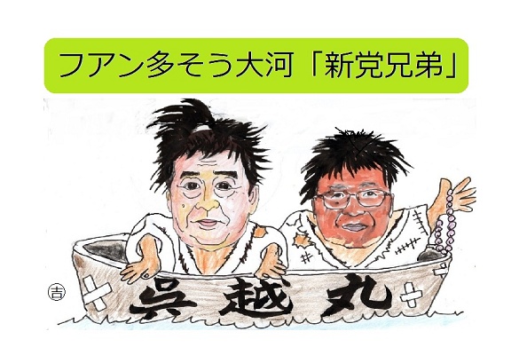 十男戯画~フアン多そう大河「新党兄弟」 2026年1月18日 最終更新日時 : 2026年1月18日 Yatagarasu 「ファンのアが大きすぎませんか?」 「不安?考え過ぎじゃ、天下一とるには小異を捨て大同につくじゃ」 「昨日の敵は今日の友ですもんね」 吉原十男