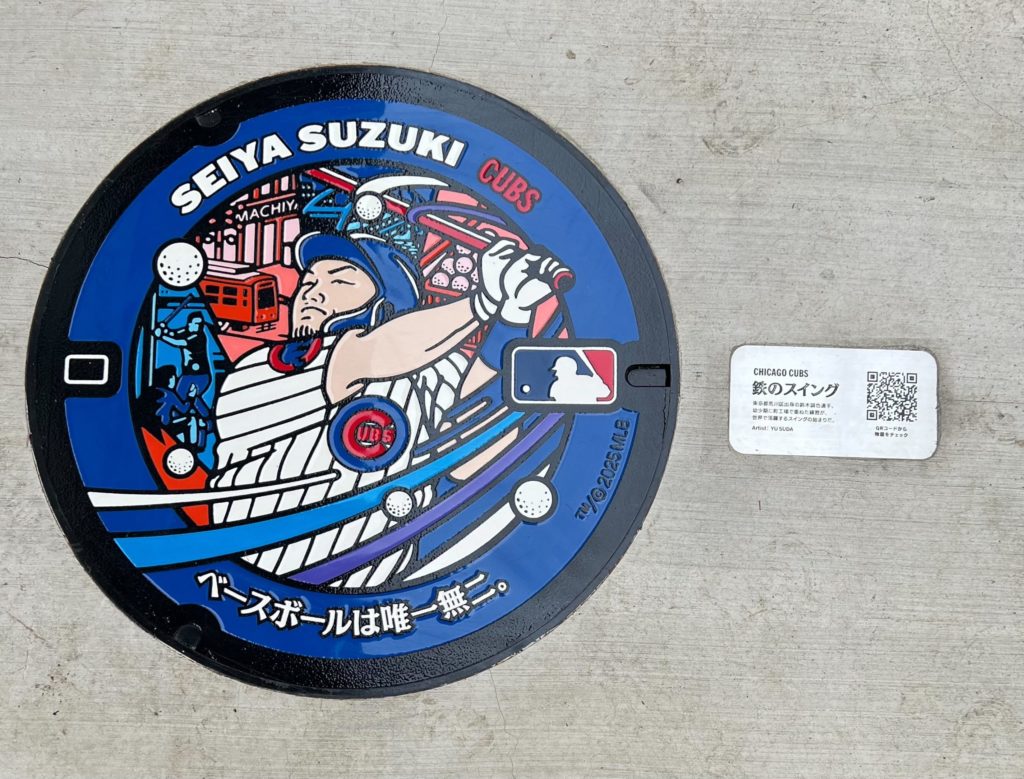 荒川町屋の星、大リーガーの鈴木誠也選手のマンホールの蓋。