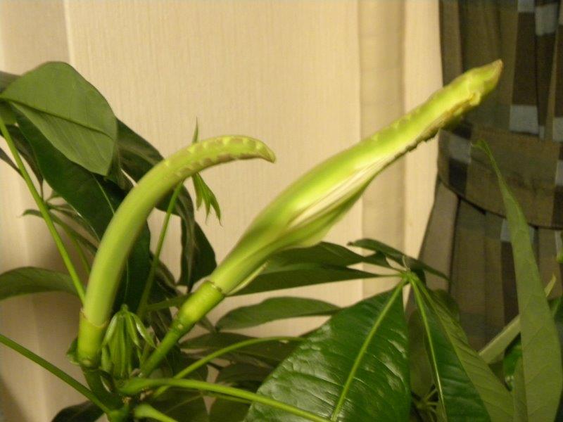 昨年7月にパキラが突然花をつけ、そもそもパキラが花をつける
