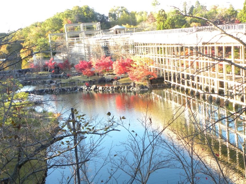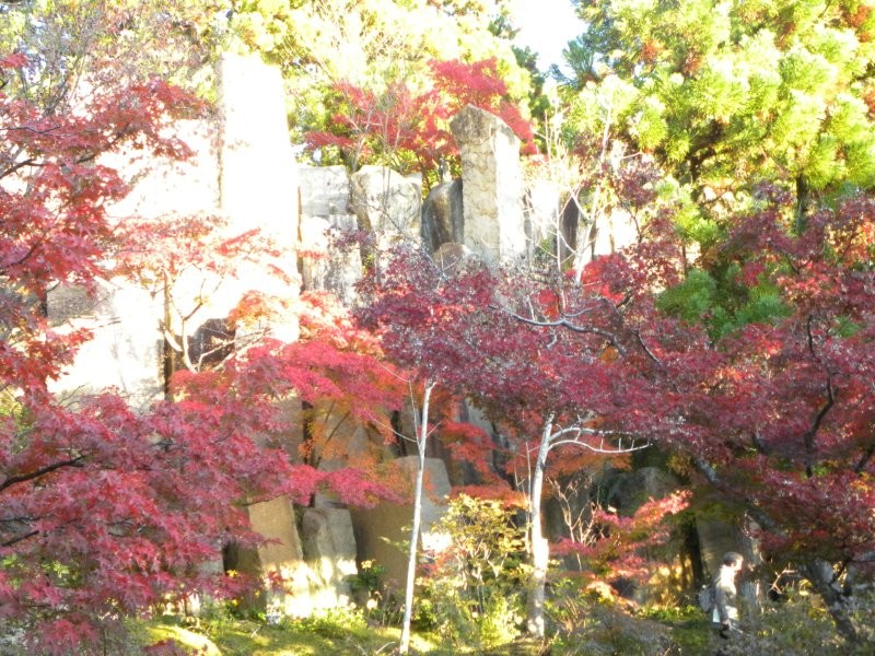 10/11→「けいはんな記念公園」京都・大阪・奈良の三都市にまたがる学研都市の記念公園。30年前に開園され、観月橋と巨石群を背景に紅葉が映えていました。