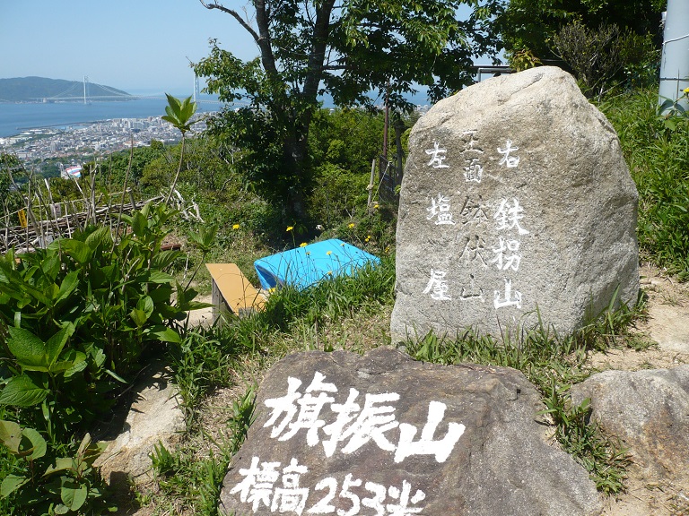 3⇒ロープウェーで旗振山へ、眼下に見えるのは明石大橋、その奥は淡路島。